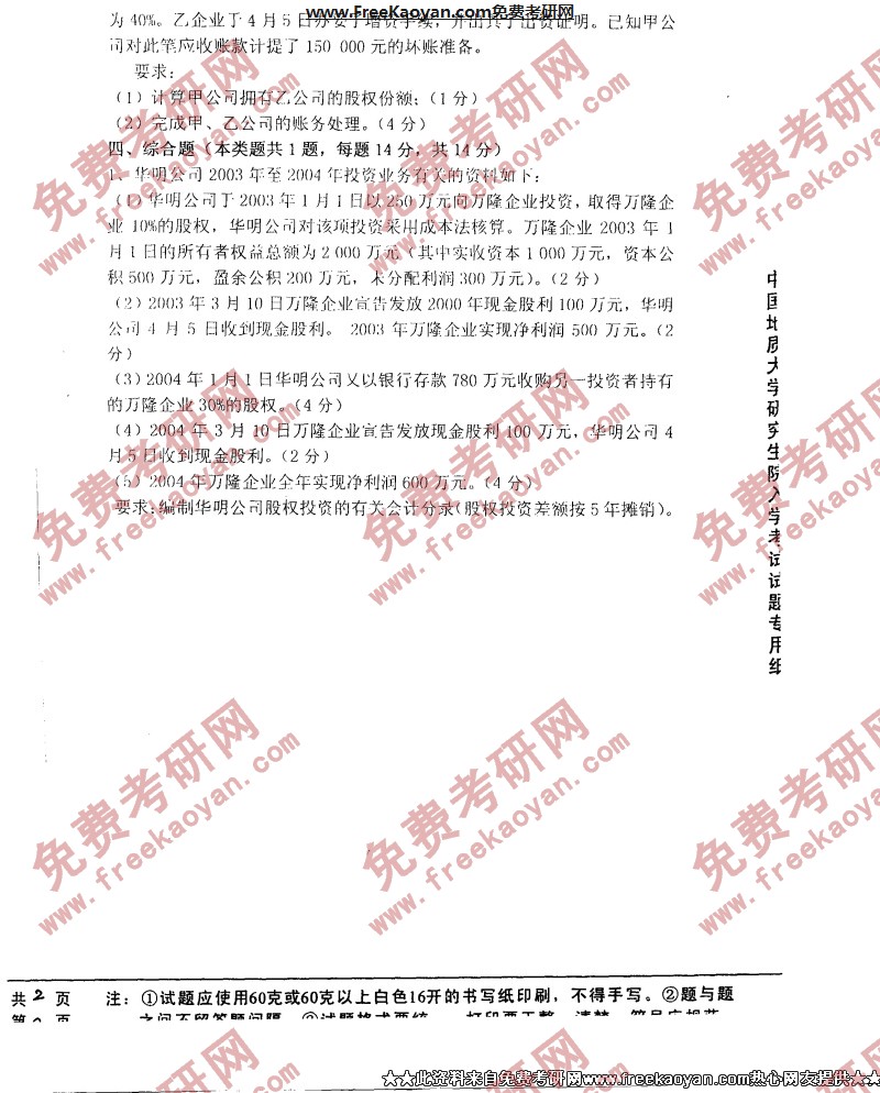 专业课考研经验 本站小编 FreeKaoyan 2018-01-23中国地质大学(武汉)2006年考研真题-分析化学