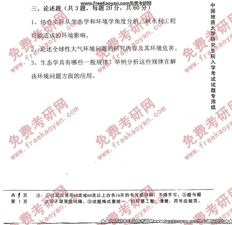 专业课考研经验 本站小编 FreeKaoyan 2018-01-23中国地质大学(武汉)2006年考研真题-环境化学