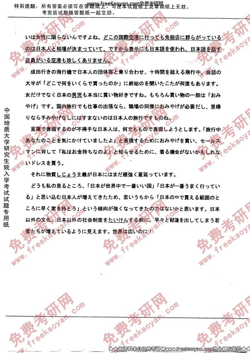 中国地质大学(武汉)2006年考研真题-日语(二外)(5)