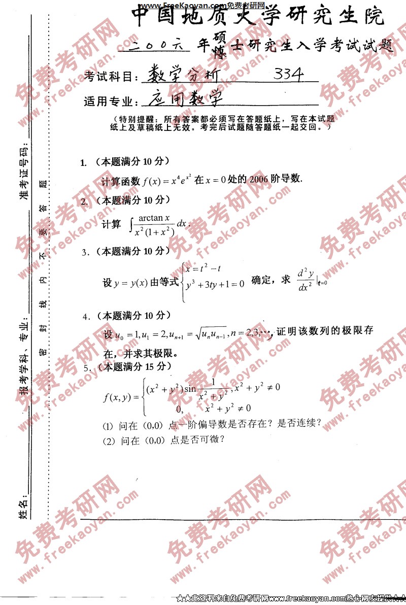 专业课考研经验 本站小编 FreeKaoyan 2018-01-23中国地质大学(武汉)2006年考研真题-古生物地史学