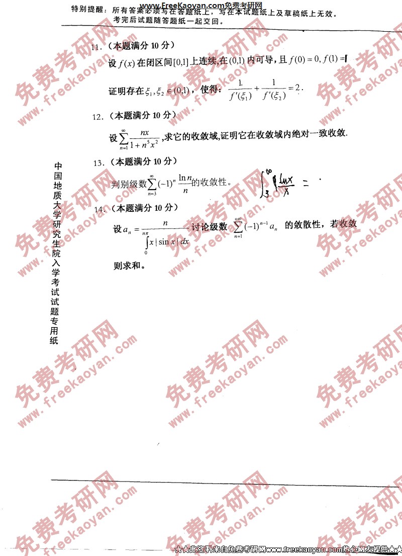 相关话题/中国地质大学 考研真题 数学分析