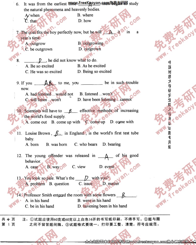 相关话题/中国地质大学 考研真题 英语