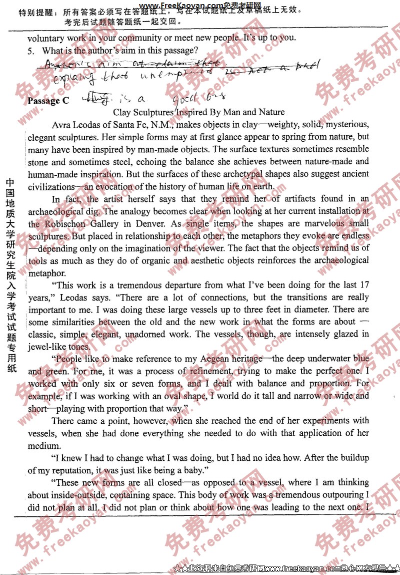 相关话题/考研真题 中国地质大学 综合考试 英语