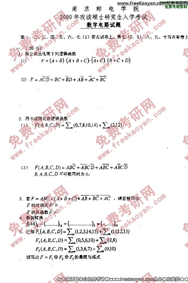 南京邮电大学2000年考研真题-数字电路