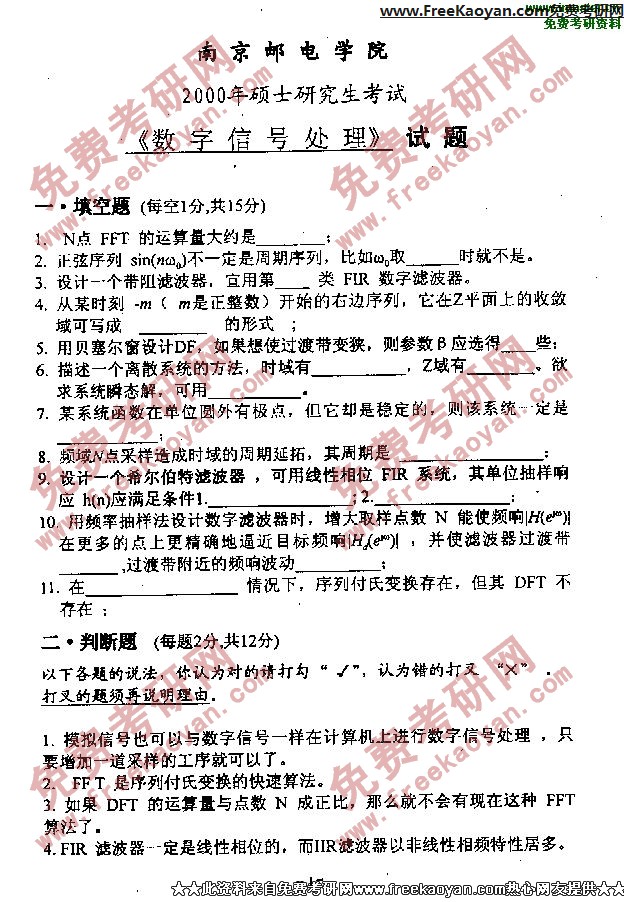 南京邮电大学2000年考研真题-数字信号处理