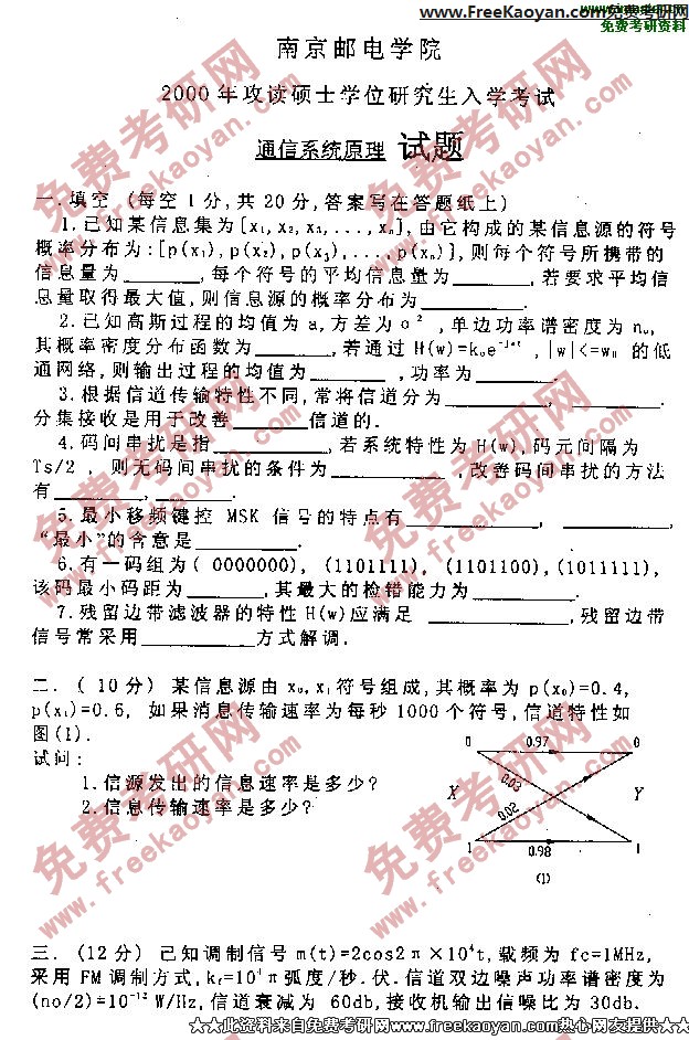 南京邮电大学2000年考研真题-通信系统原理