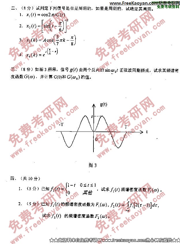 南京邮电大学2000年考研真题-信号与线性系统(2)