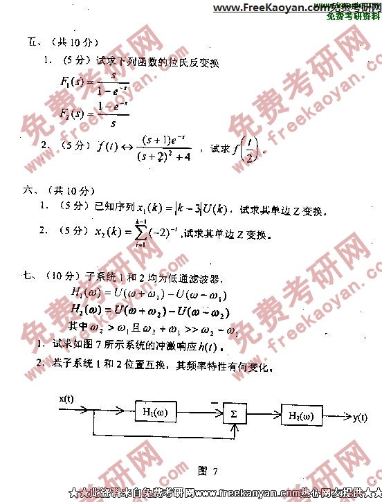南京邮电大学2000年考研真题-信号与线性系统(3)