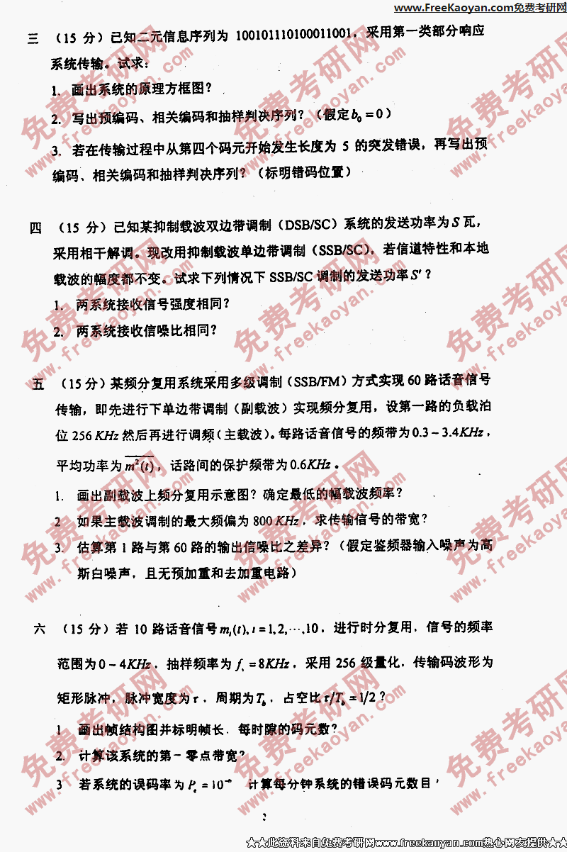 专业课考研经验 本站小编 FreeKaoyan 2018-01-23南京邮电大学2000年考研真题-通信系统原理