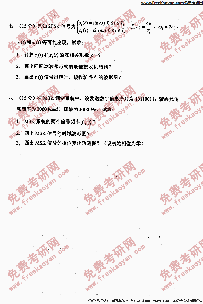 专业课考研经验 本站小编 FreeKaoyan 2018-01-23南京邮电大学2000年考研真题-通信系统原理