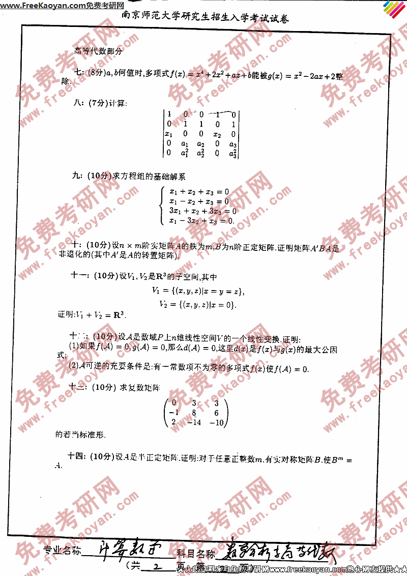 相关话题/考研真题 南京师范大学 高等代数 数学分析