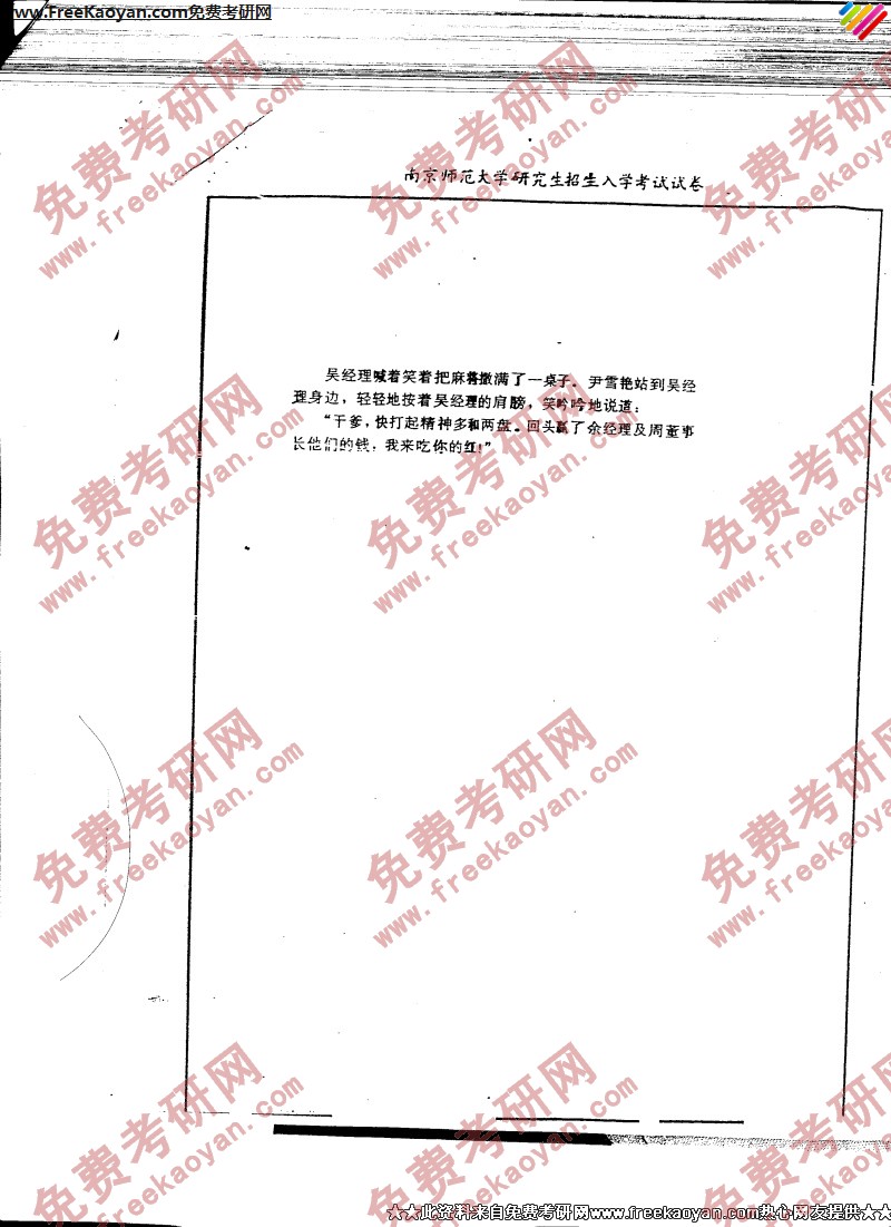 专业课考研经验 本站小编 FreeKaoyan 2018-01-23南京师范大学2000年考研真题-文学评论写作
