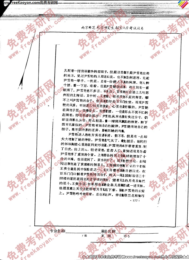 专业课考研经验 本站小编 FreeKaoyan 2018-01-23南京师范大学1999年考研真题-文学评论写作