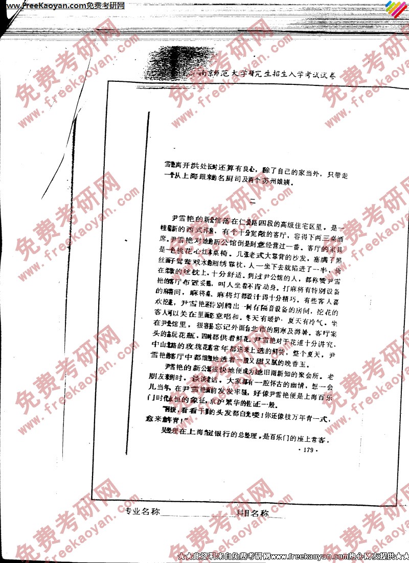 专业课考研经验 本站小编 FreeKaoyan 2018-01-23南京师范大学2000年考研真题-文学评论写作