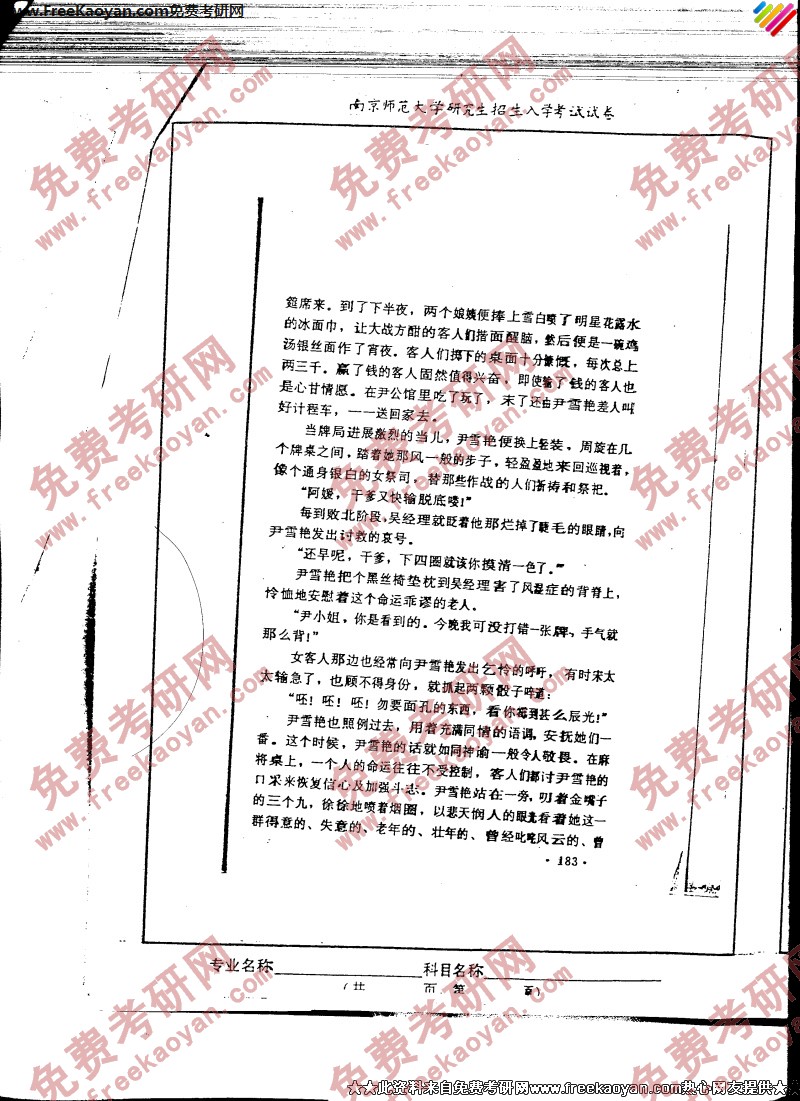 专业课考研经验 本站小编 FreeKaoyan 2018-01-23南京师范大学2000年考研真题-文学评论写作