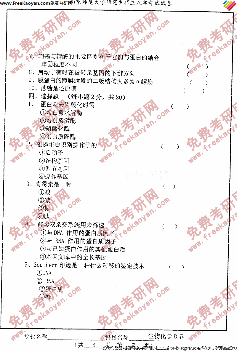 南京师范大学2004年考研真题-生物化学B卷(2)