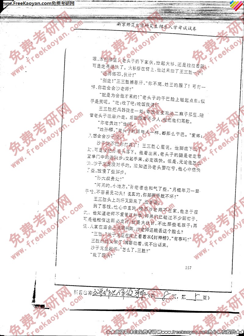 专业课考研经验 本站小编 FreeKaoyan 2018-01-23南京师范大学2000年考研真题-古代文论