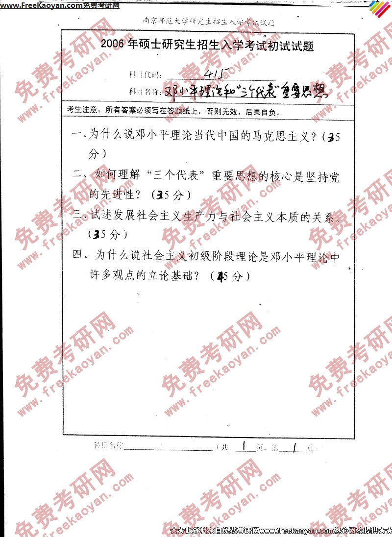 南京师范大学2006年考研真题-邓小平理论与三个代表重要思想理论