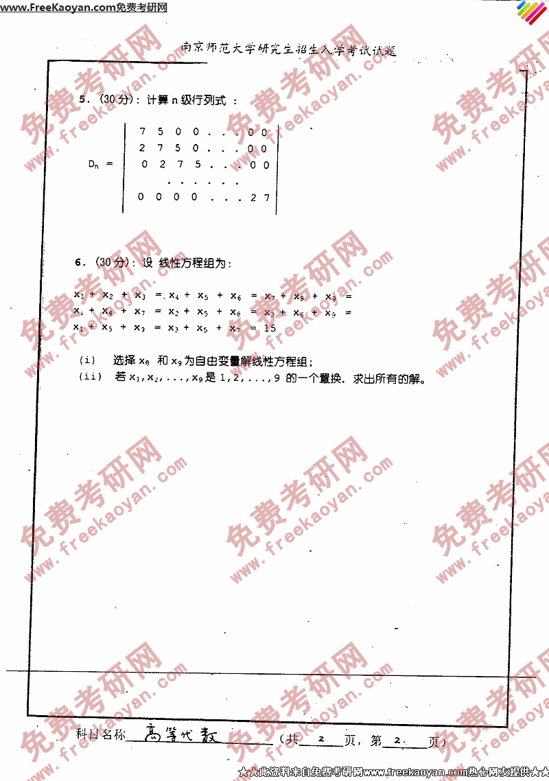 专业课考研经验 本站小编 FreeKaoyan 2018-01-23南京师范大学2005年考研真题-高等代数