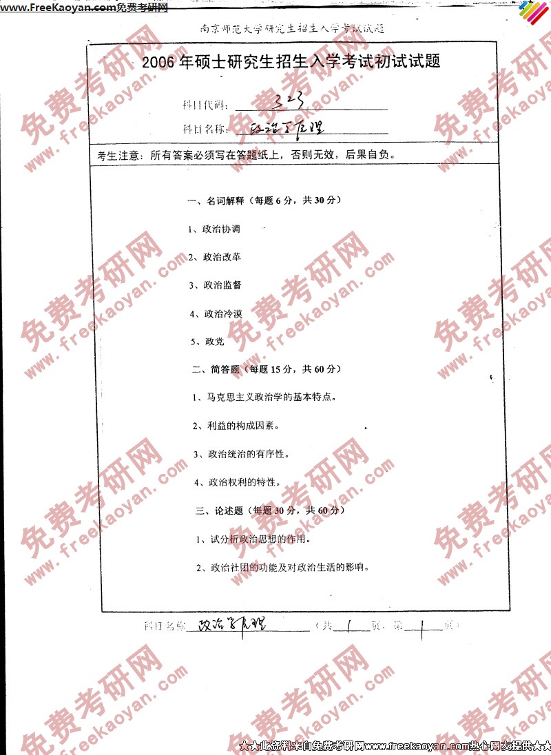 相关话题/南京师范大学 考研真题 政治学原理
