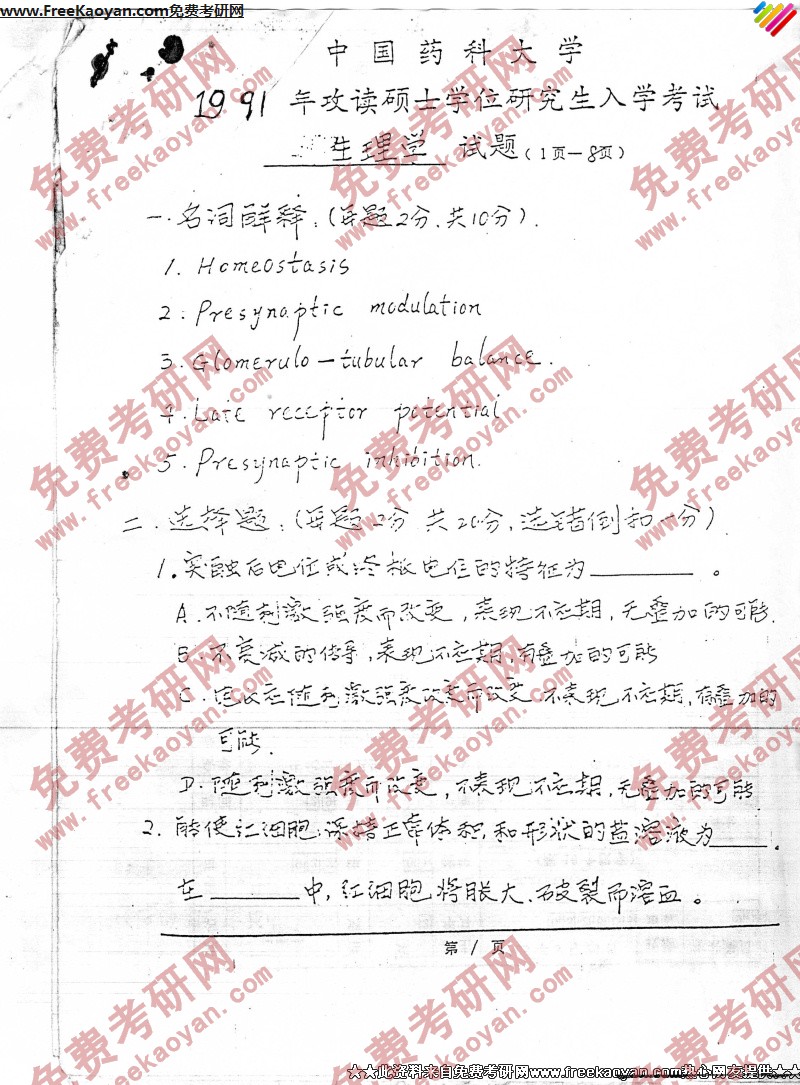 专业课考研经验 本站小编 FreeKaoyan 2018-01-23南京师范大学2005年考研真题-生物化学