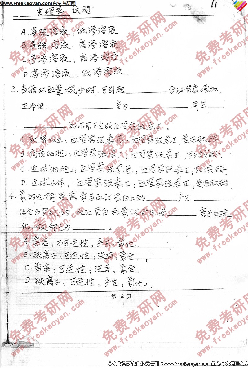 专业课考研经验 本站小编 FreeKaoyan 2018-01-23南京师范大学2005年考研真题-生物化学