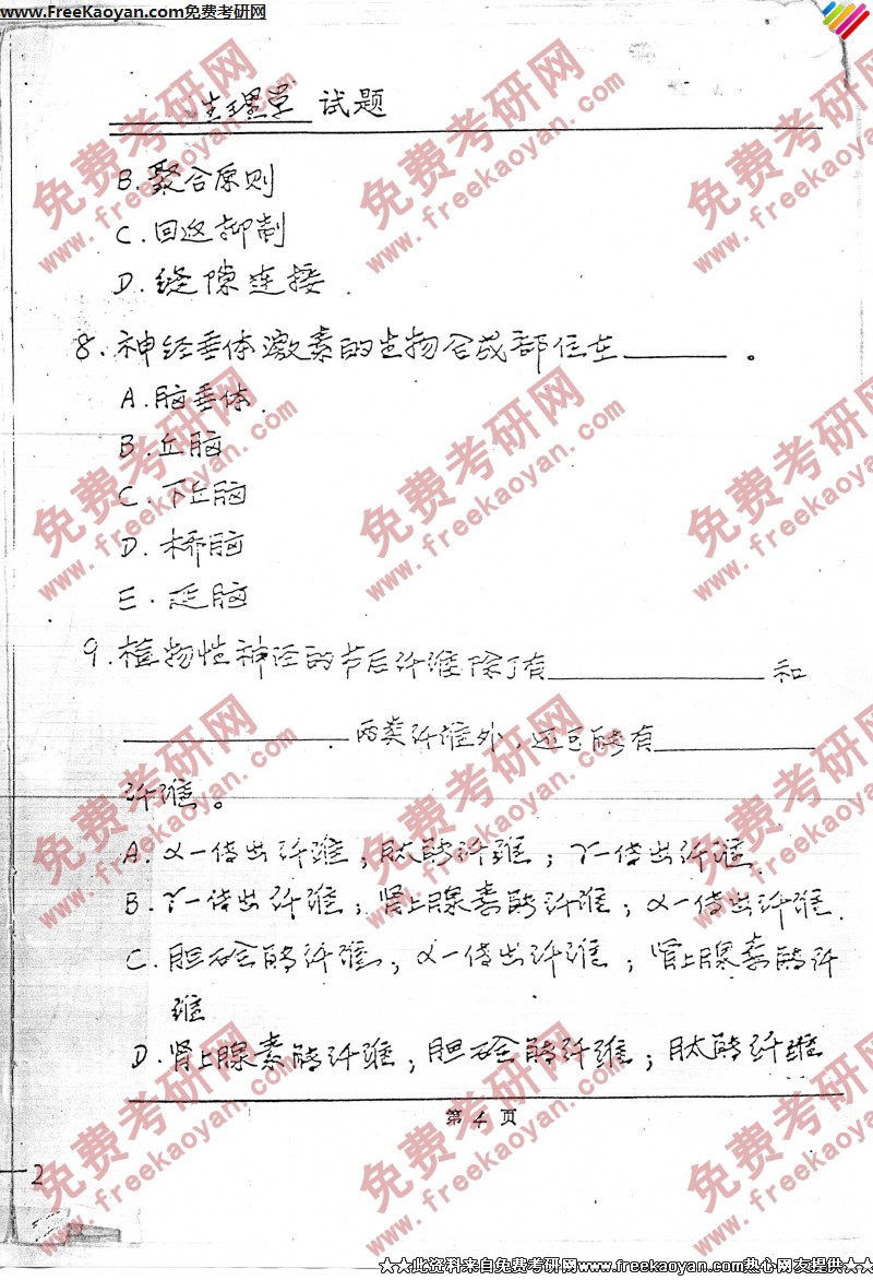 专业课考研经验 本站小编 FreeKaoyan 2018-01-23南京师范大学2005年考研真题-生物化学