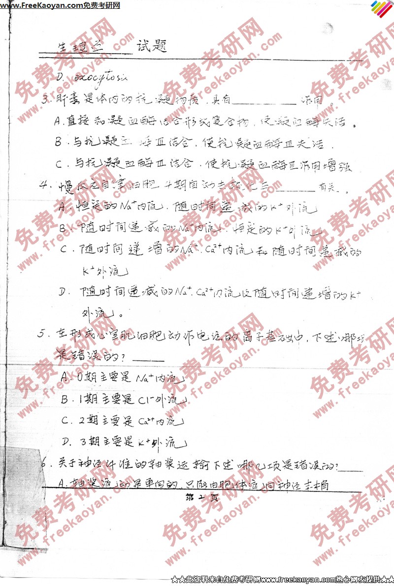 专业课考研经验 本站小编 FreeKaoyan 2018-01-23中国药科大学1991年考研真题-生理学