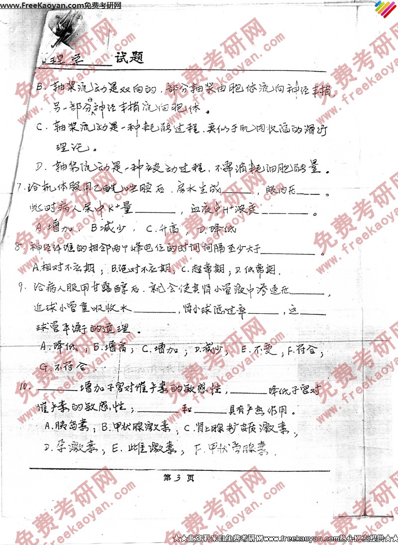 专业课考研经验 本站小编 FreeKaoyan 2018-01-23中国药科大学1991年考研真题-生理学