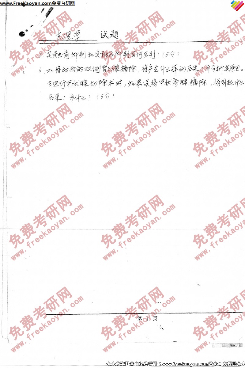 专业课考研经验 本站小编 FreeKaoyan 2018-01-23中国药科大学1991年考研真题-生理学
