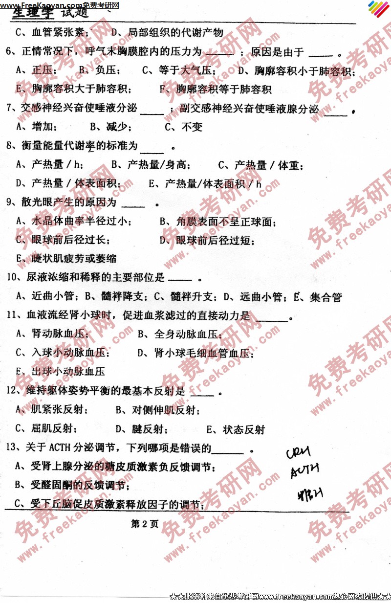 专业课考研经验 本站小编 FreeKaoyan 2018-01-23中国药科大学2000年考研真题-生理学