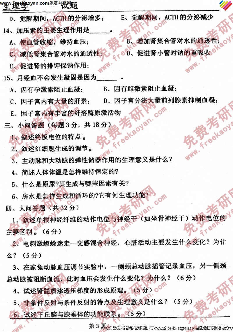 专业课考研经验 本站小编 FreeKaoyan 2018-01-23中国药科大学2000年考研真题-生理学
