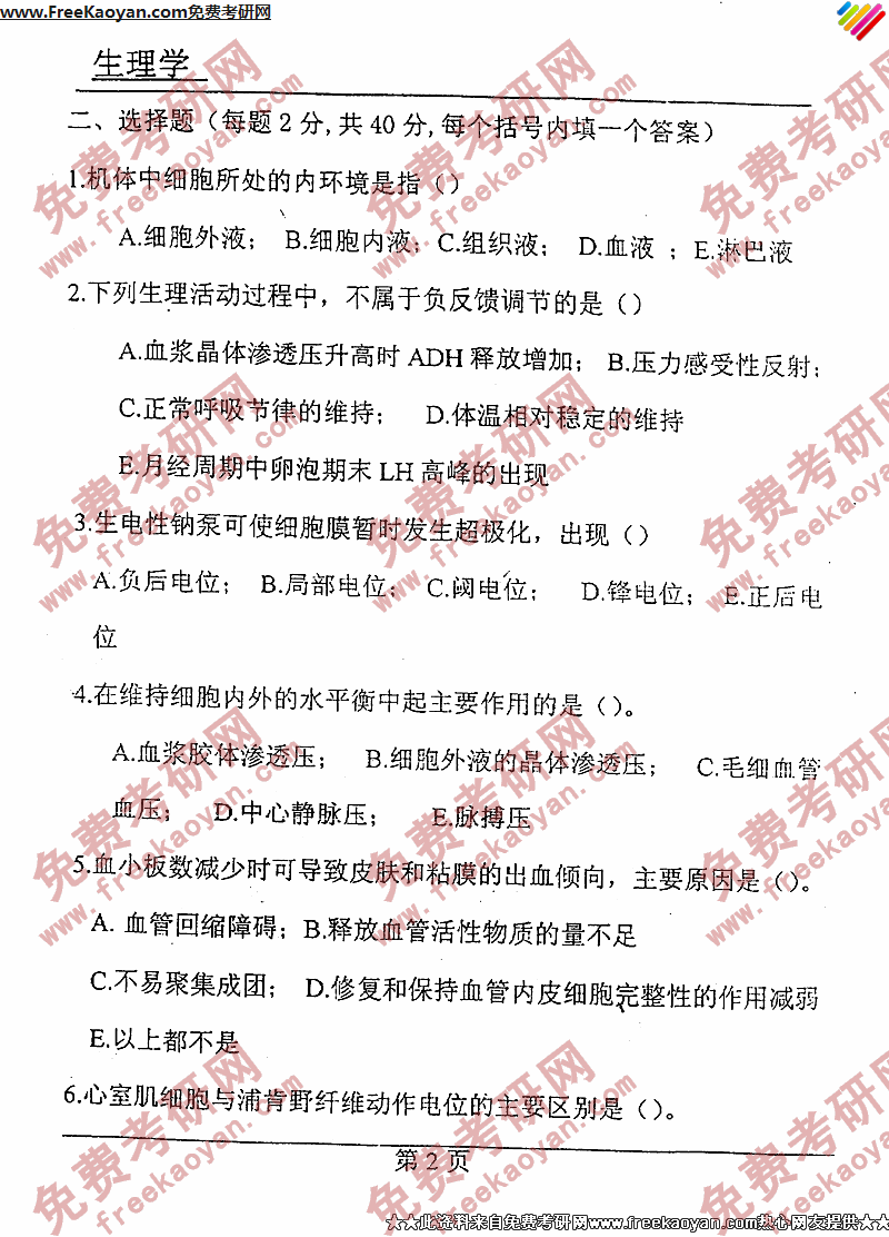 专业课考研经验 本站小编 FreeKaoyan 2018-01-23中国药科大学2002年考研真题-生理学