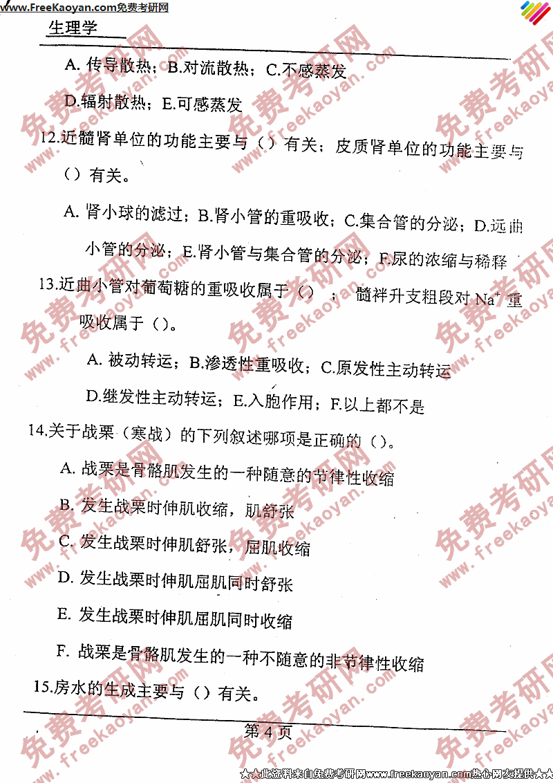 专业课考研经验 本站小编 FreeKaoyan 2018-01-23中国药科大学2000年考研真题-生理学