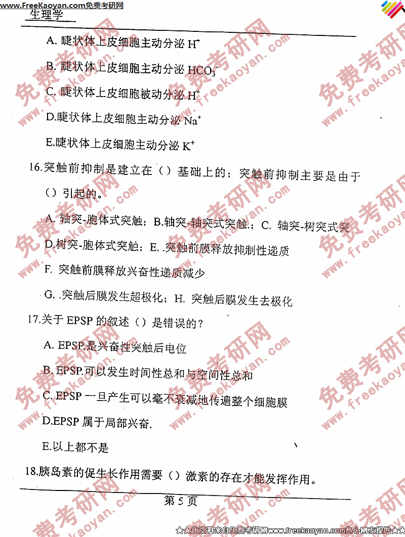 专业课考研经验 本站小编 FreeKaoyan 2018-01-23中国药科大学2002年考研真题-生理学