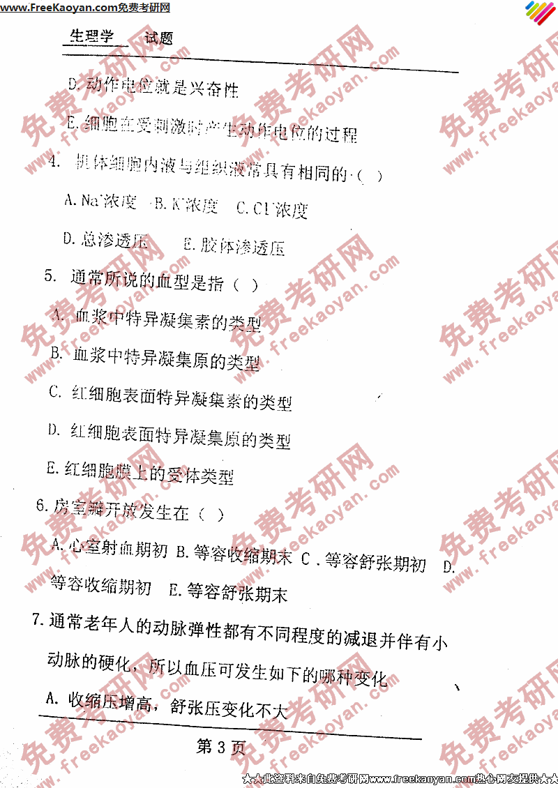 专业课考研经验 本站小编 FreeKaoyan 2018-01-23中国药科大学2003年考研真题-生理学
