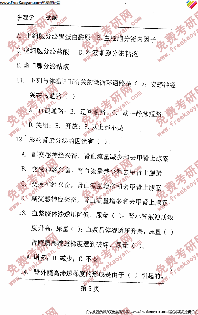 专业课考研经验 本站小编 FreeKaoyan 2018-01-23中国药科大学2001年考研真题-生理学
