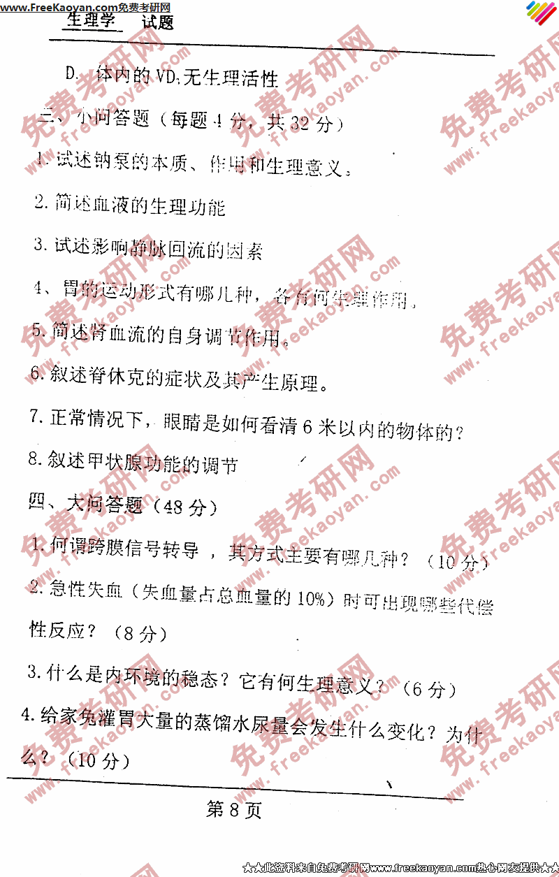 专业课考研经验 本站小编 FreeKaoyan 2018-01-23中国药科大学1992年考研真题-生理学