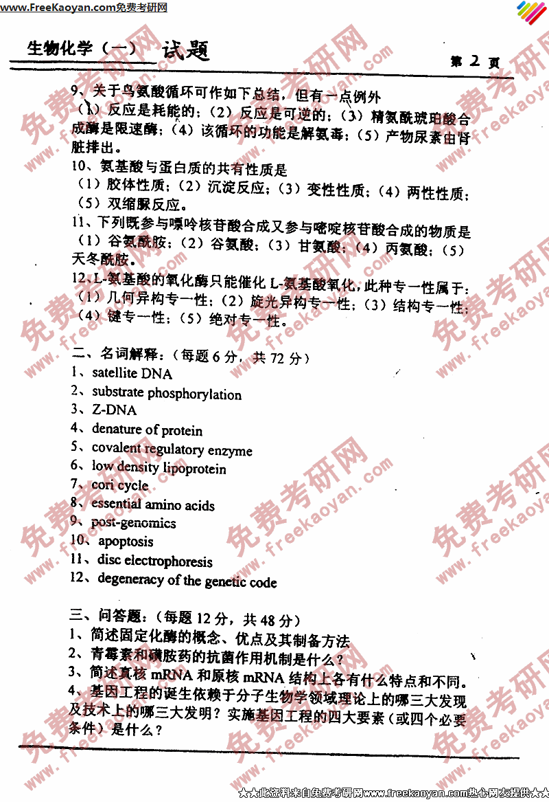 专业课考研经验 本站小编 FreeKaoyan 2018-01-23中国药科大学2003年考研真题-生物化学(二)