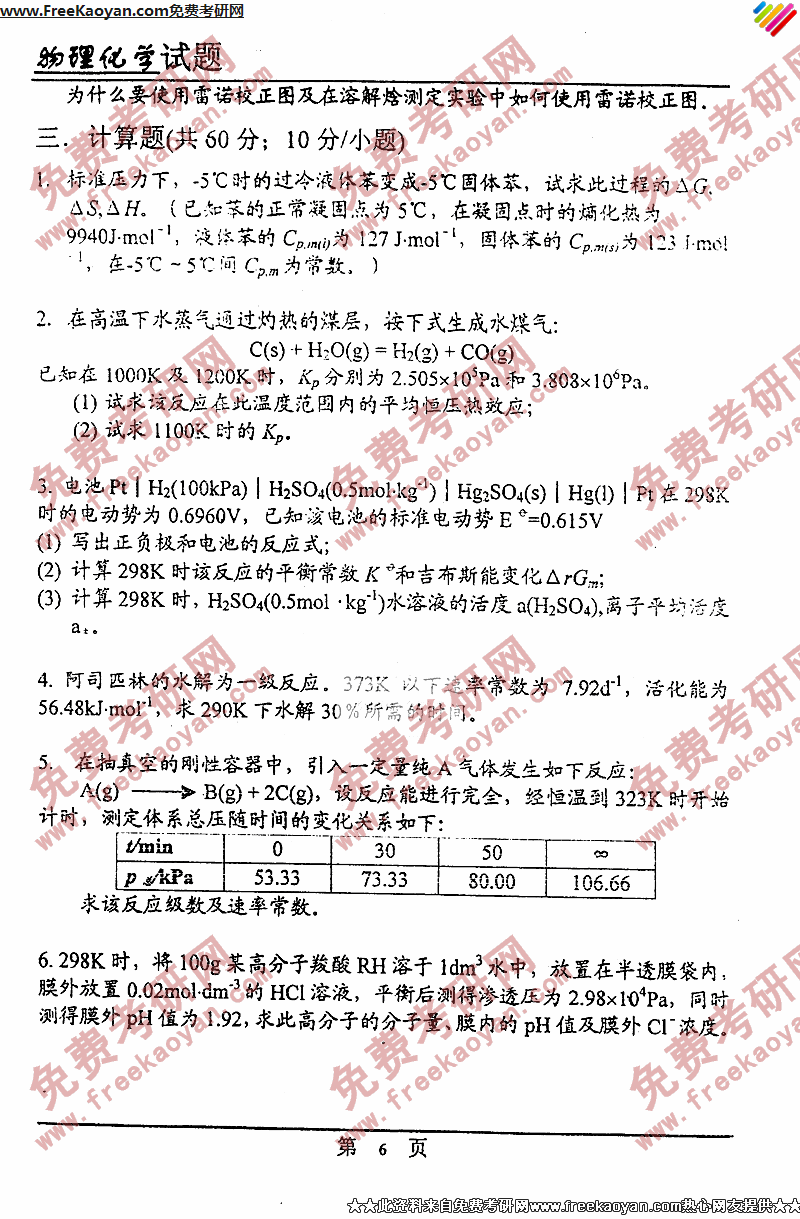 专业课考研经验 本站小编 FreeKaoyan 2018-01-23中国药科大学2003年考研真题-物理化学