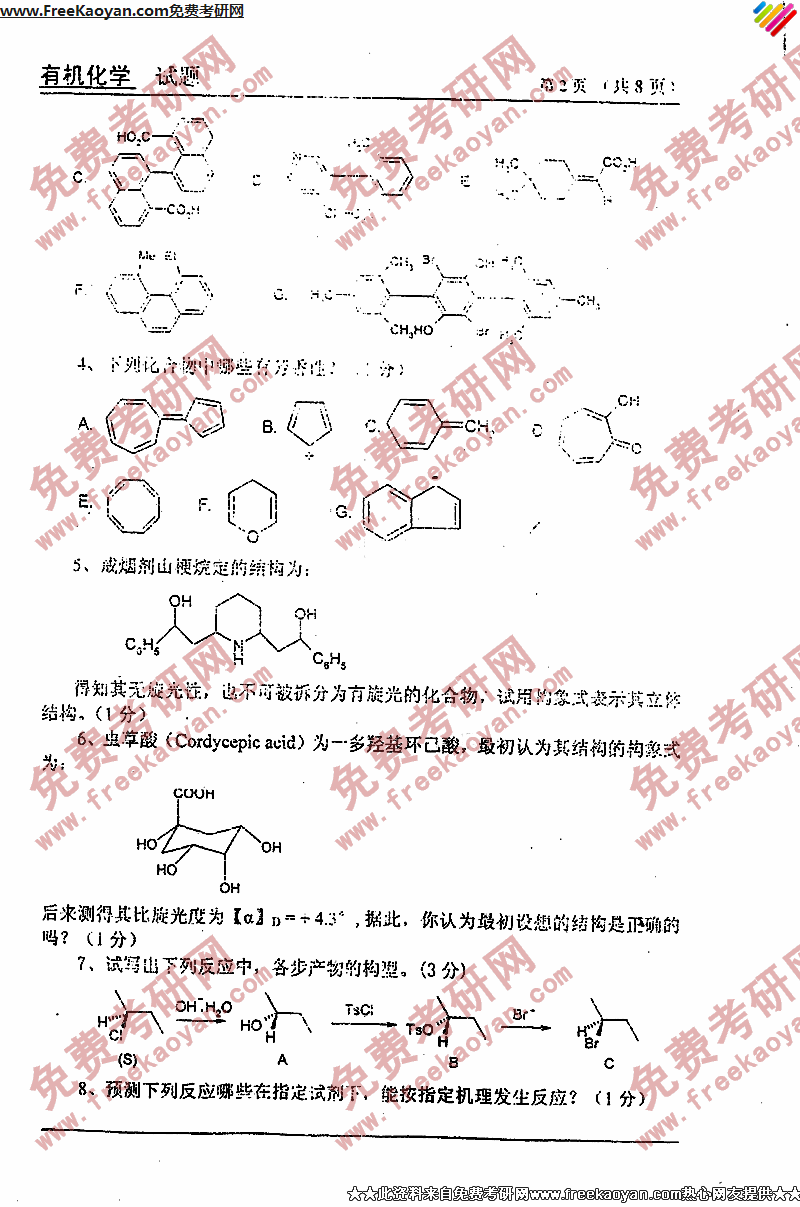 专业课考研经验 本站小编 FreeKaoyan 2018-01-23中国药科大学2003年考研真题-有机化学