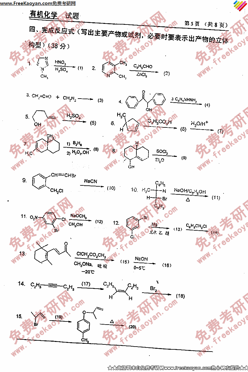 专业课考研经验 本站小编 FreeKaoyan 2018-01-23中国药科大学2003年考研真题-有机化学
