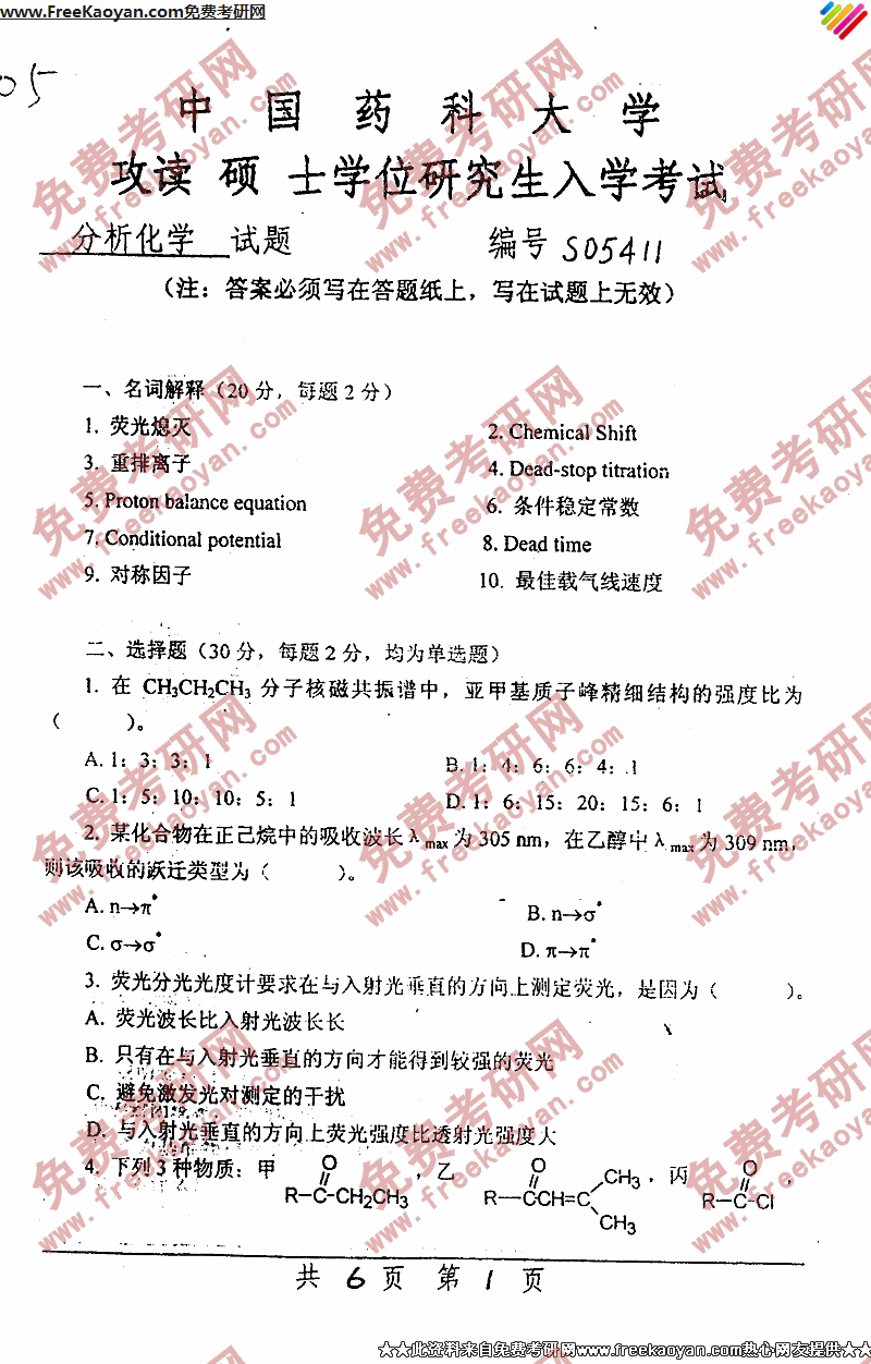 专业课考研经验 本站小编 FreeKaoyan 2018-01-23中国药科大学2004年考研真题-分析化学