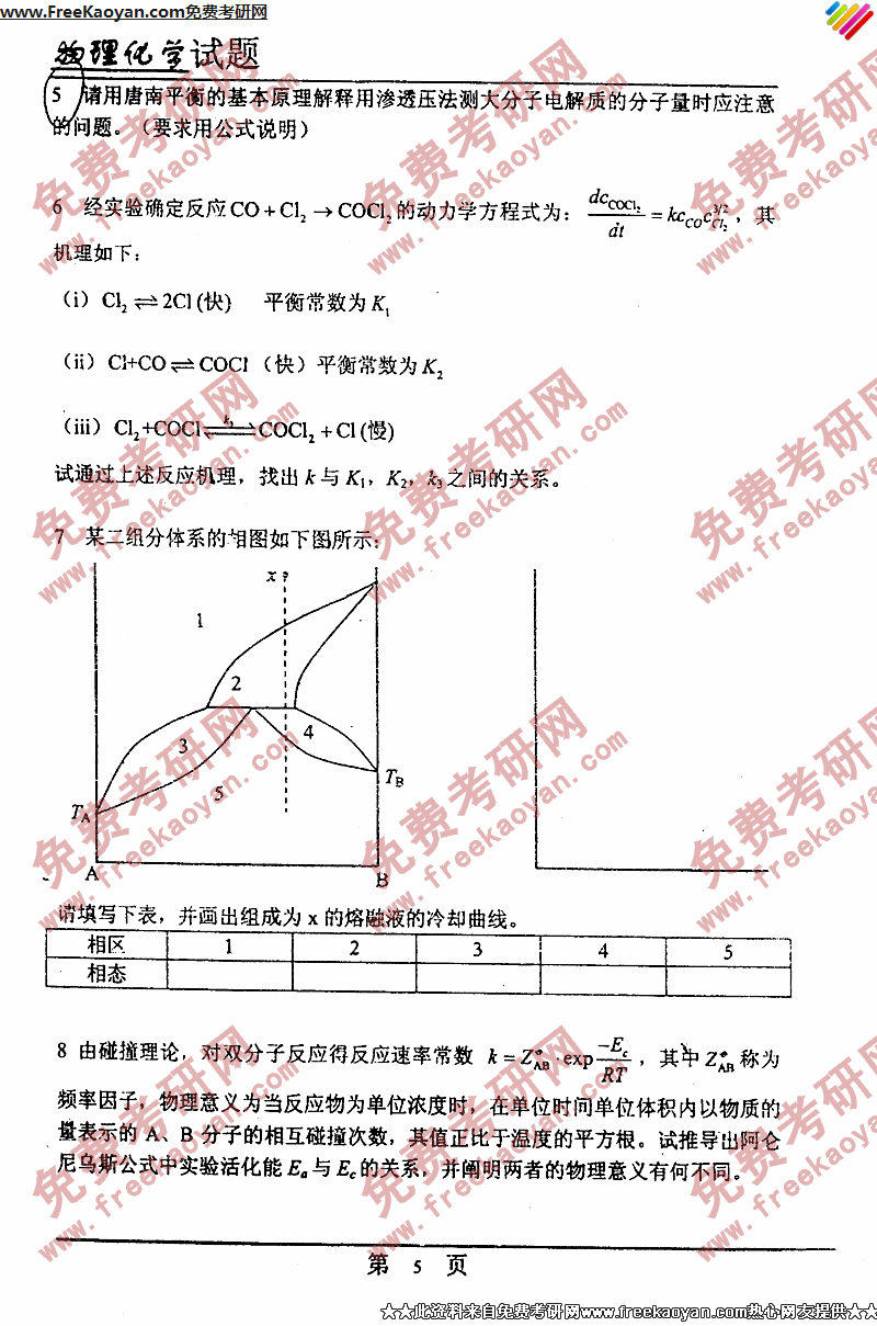 专业课考研经验 本站小编 FreeKaoyan 2018-01-23中国药科大学2003年考研真题-物理化学