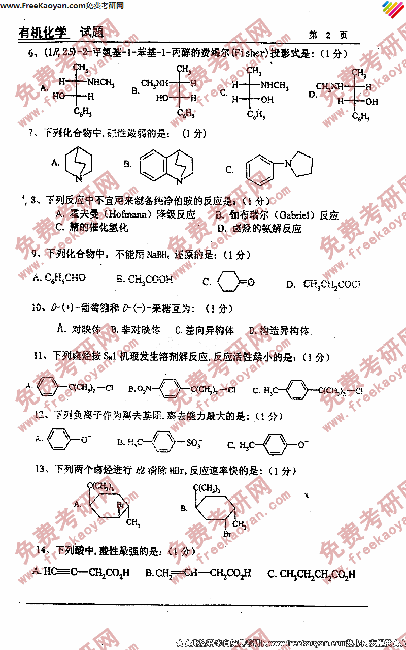 专业课考研经验 本站小编 FreeKaoyan 2018-01-23中国药科大学2003年考研真题-有机化学