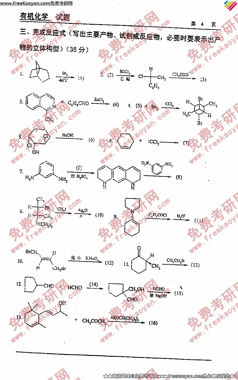 专业课考研经验 本站小编 FreeKaoyan 2018-01-23中国药科大学2004年考研真题-有机化学