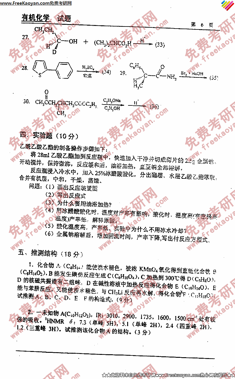 专业课考研经验 本站小编 FreeKaoyan 2018-01-23中国药科大学2004年考研真题-有机化学