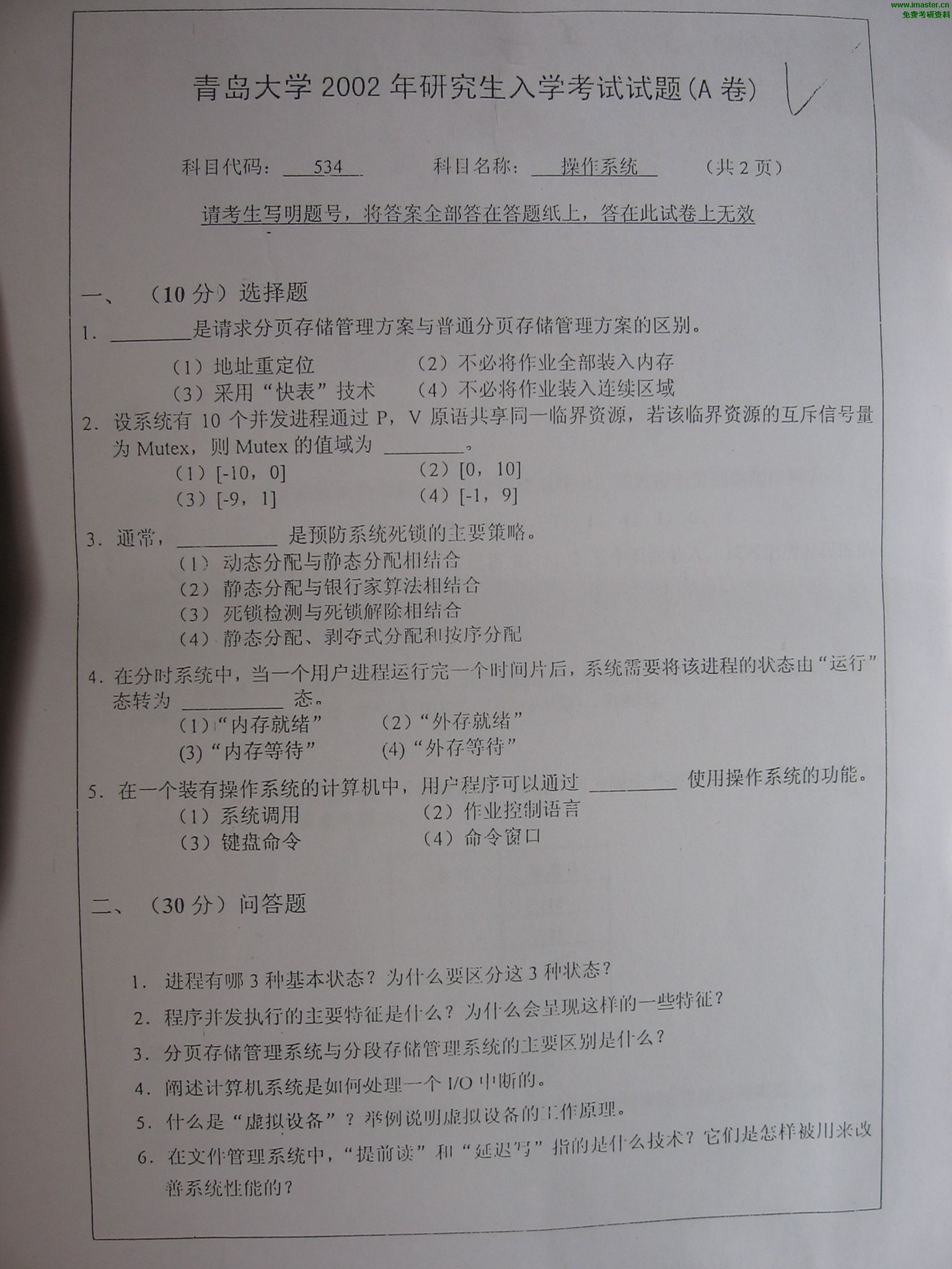 相关话题/青岛大学 考研真题 操作系统