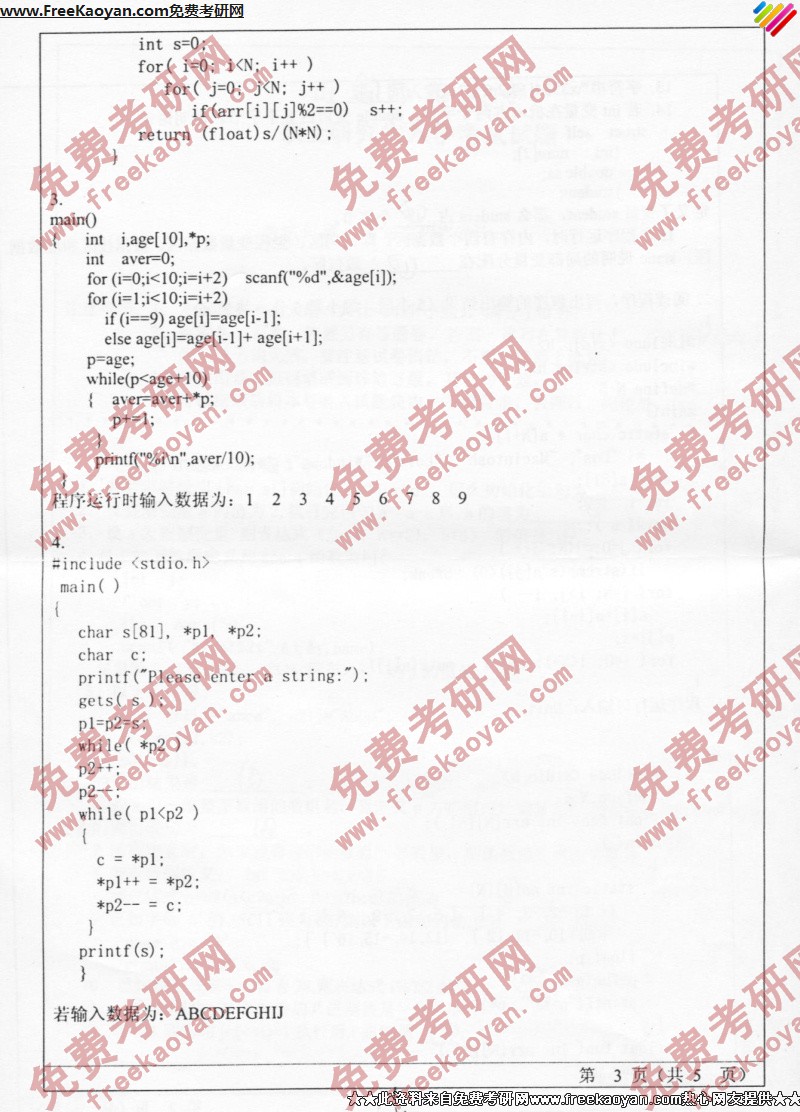 山东师范大学2005年考研真题-C语言程序设计(3)