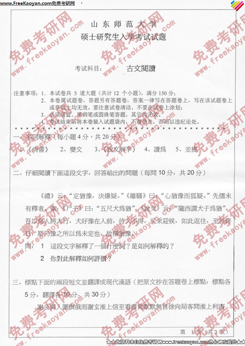 专业课考研经验 本站小编 FreeKaoyan 2018-01-23山东师范大学2005年考研真题-二外英语